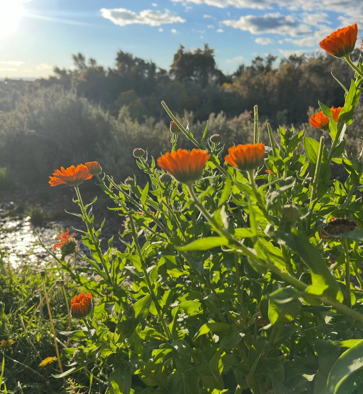 Calendula – Orange blossoms holding strong.